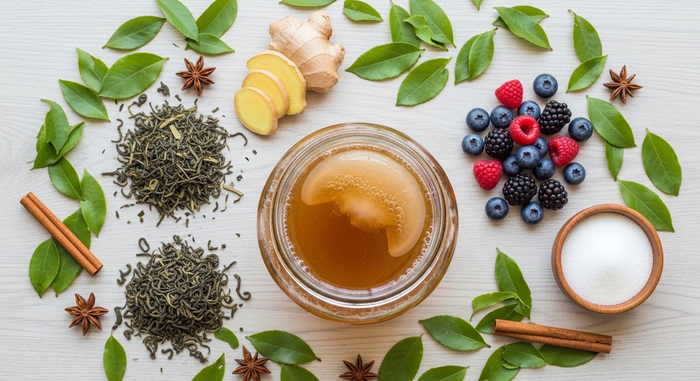콤부차는 홍차나 녹차에 설탕을 넣고,