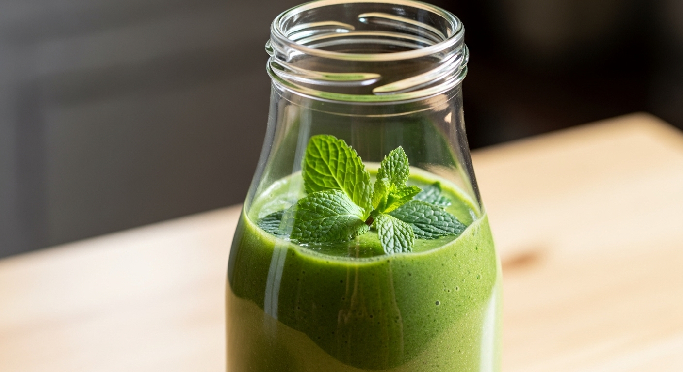 이 스무디의 핵심 재료는 시금치, 바나나, 사과입니다.