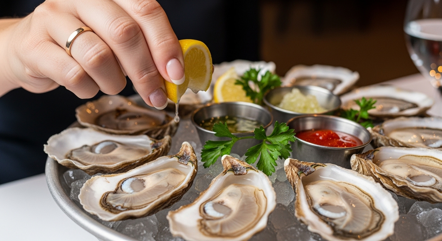 • 살짝 데친 굴을 레몬즙과 함께 먹으면